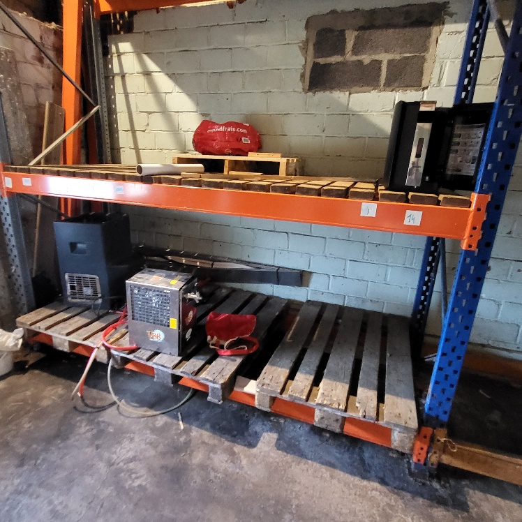 – Gerbeur électrique AMEISE EPL 210 – chargeur intégré, 3 pompes à bière autonomes diverses – mauvais état général, environ 25ml de racks à palettes en acier à 1, 2 ou 3 niveaux, transpalette LITTLE MULE – cap. 2.5T, lot de bouteilles en verre diverses (environ 30 pièces), aspirateur KARCHER, chariot de ménage, chariot en acier, vitrine verticale réfrigérée CORECO ouvrant à 1 porte vitrée – groupe logé
