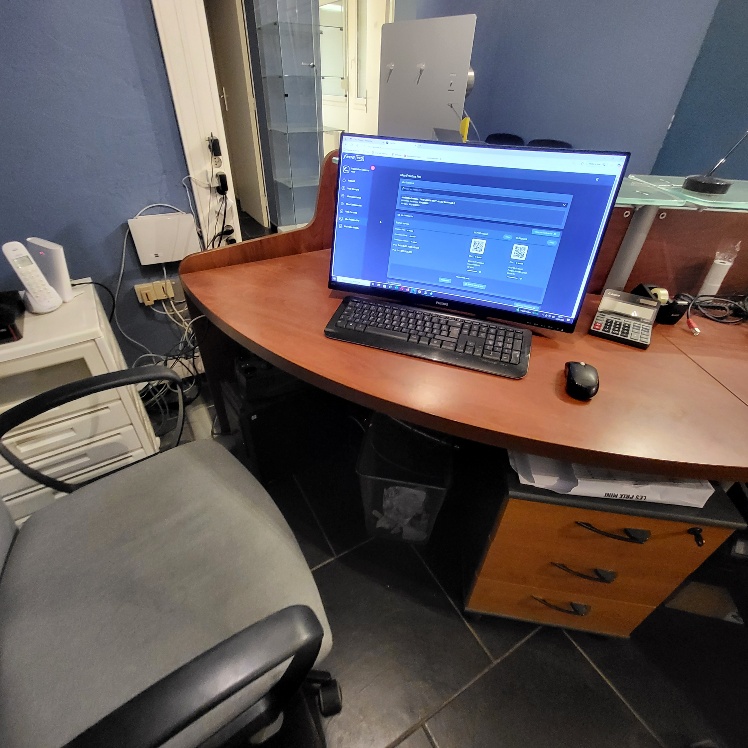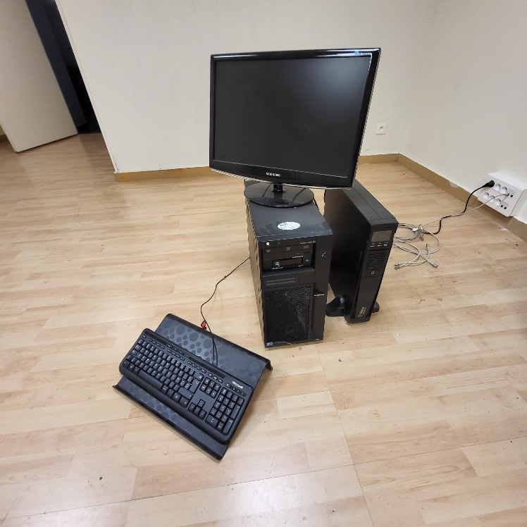 – Matériel et mobilier de bureau dont beau bureau d’accueil, ordinateur LENOVO à écran plat incurvé et serveur LENOVO Xéon