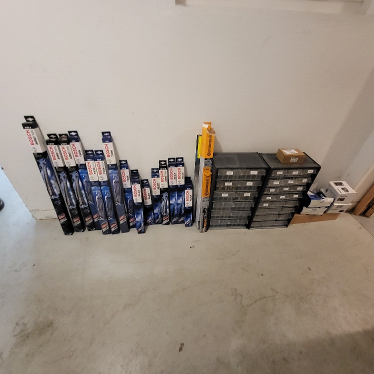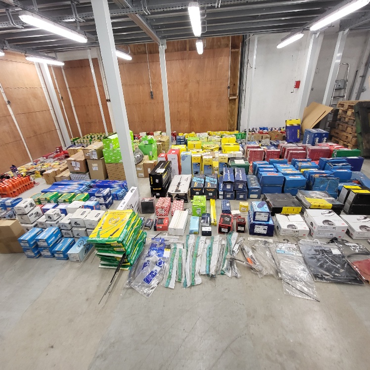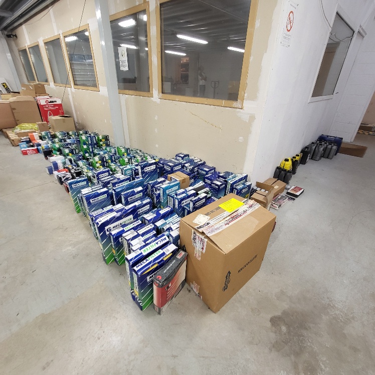 -Important stock de pièces détachées et accessoires automobiles (joints, ressorts, disques de frein, filtres, plaquettes, courroies, ampoules, balais d’essui-glace, bouchons, roulements, kits d’embrayage, silent-blocs, flexibles, capteurs, bielettes, huile, produits, pare-brise et divers – Pour info PAHT env. 50 000 euros