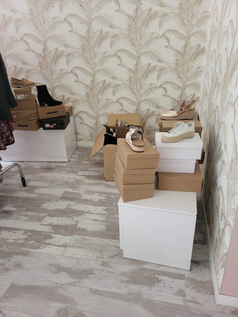Prêt à porter féminin comprenant robes, chaussures, pantalons, etc.. d’une valeur d’environ 8000 euros en PA HT