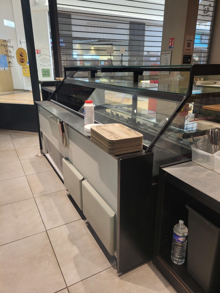 Comptoir vitrine réfrigéré positif JORDAO à 3 niveaux (env 2.5m)