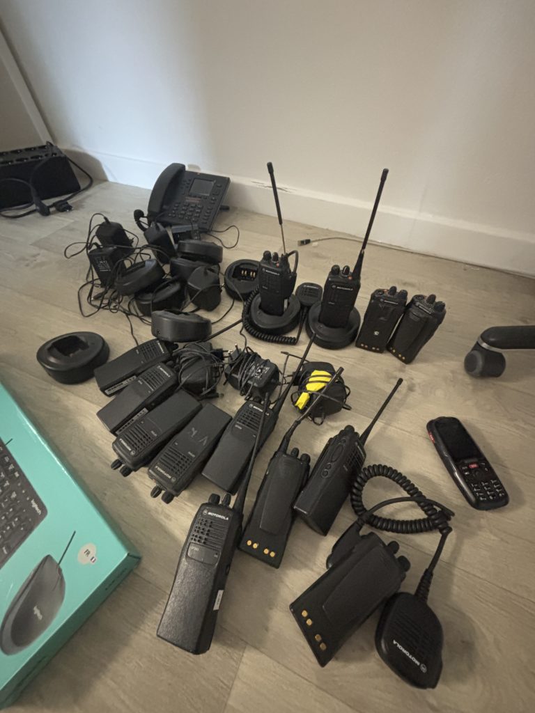 – 13 talkie-walkies de marque MOTORELA modèles GP340 (avec leurs docks de chargement et accessoires divers)