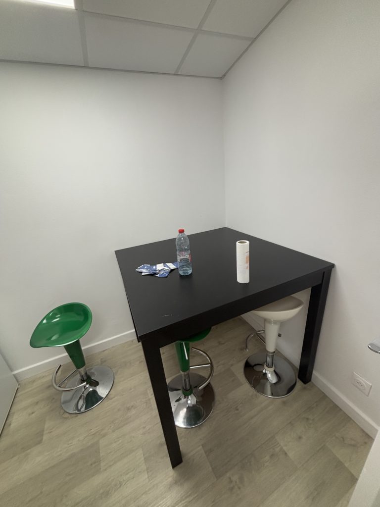 – 1 table à manger debout carrée en bois mélaminé plaqué noir