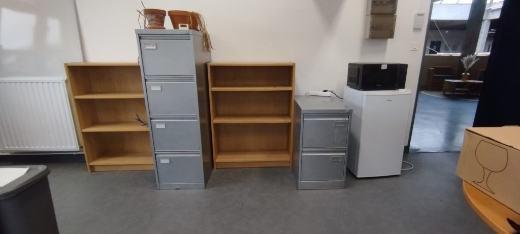 4 caissons mobiles en stratifié faux bois ouvrant à 3 tiroirs