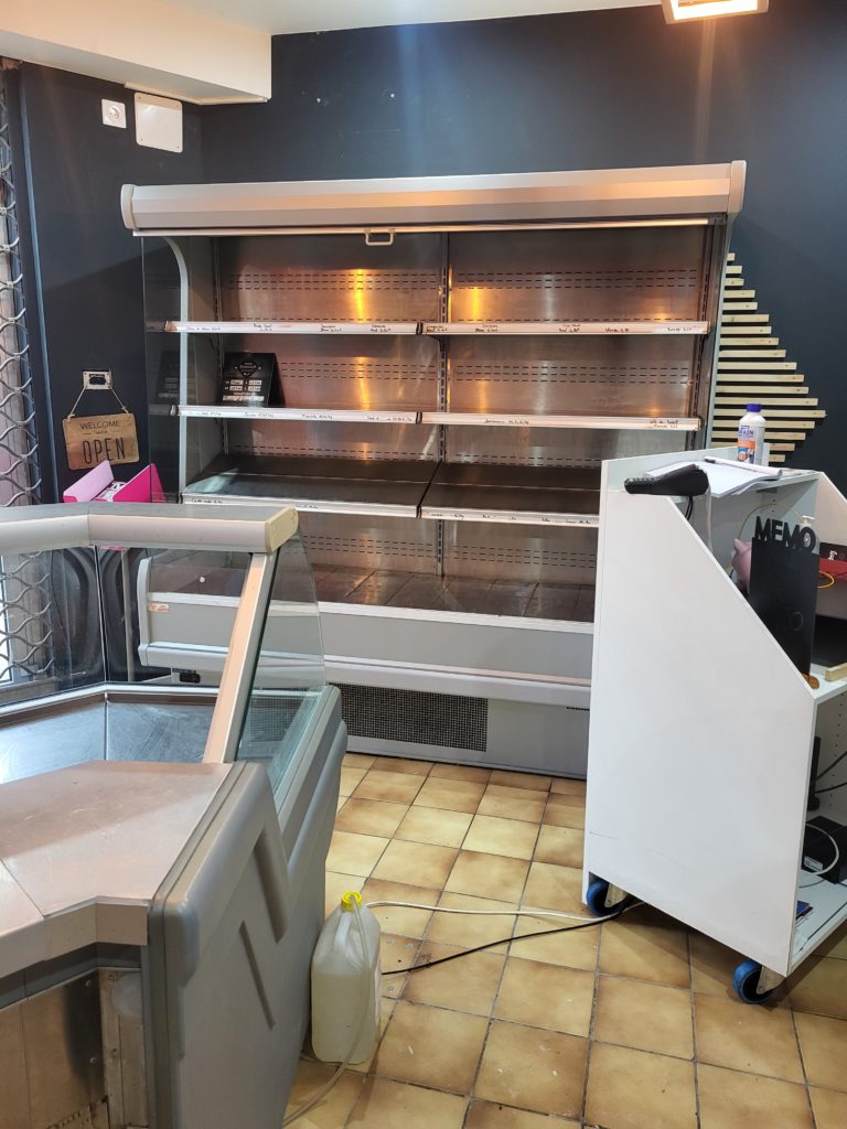 Comptoir vitrine réfrigéré positif MISA (env 5m) , en 3 éléments, groupe éloigné